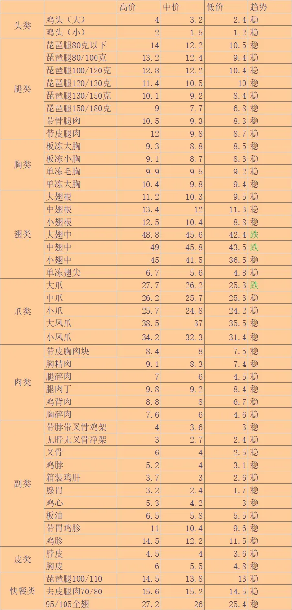 2、今日毛鸡(单位:元/斤)