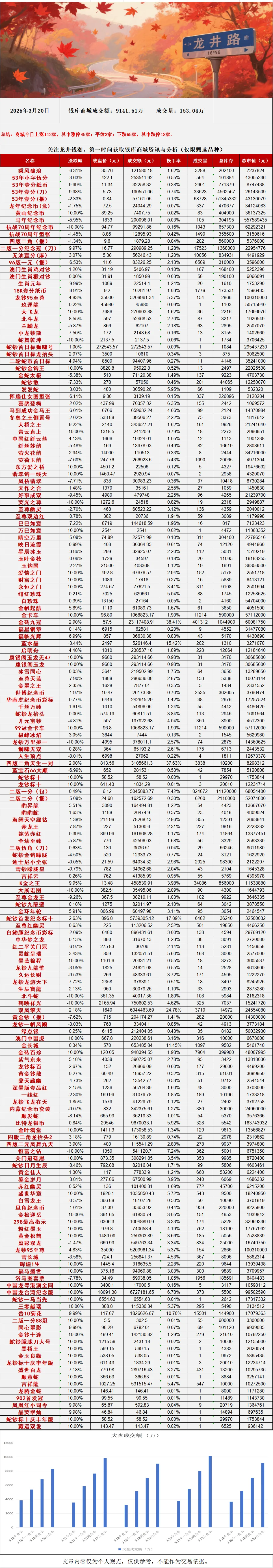 >龙井路:3月20日钱库商城行情播报