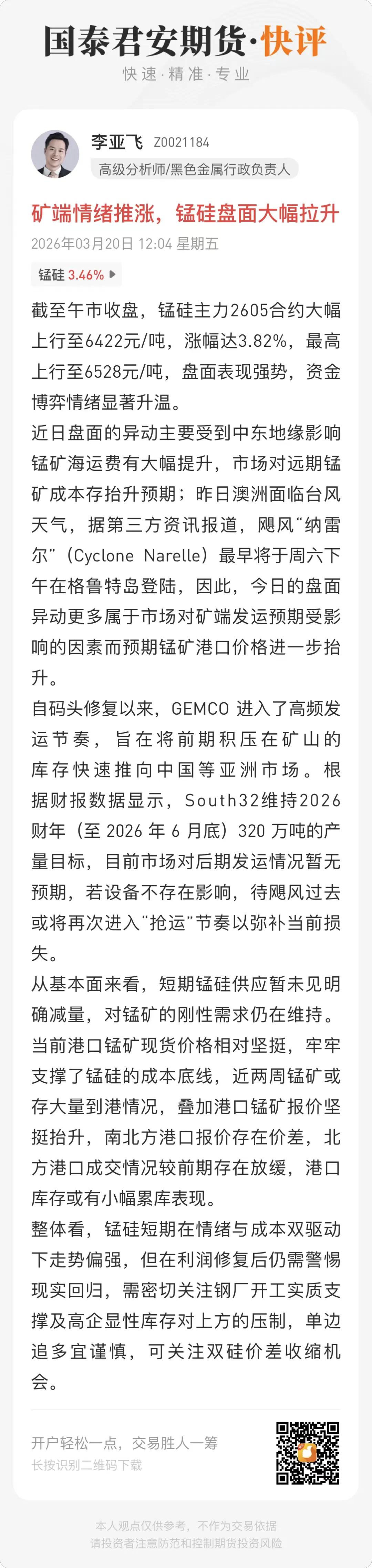 分析师声明:作者具有中国期货业协会授予的期货投资咨询执业资格或相当的专业胜任能力,保证报告所采用的数据均来自合规渠道,分析逻辑基于作者的职业理解,本报告清晰准确地反映了作者的研究观点,力求独立、客观和公正,结论不受任何第三方的授意或影响,特此声明。