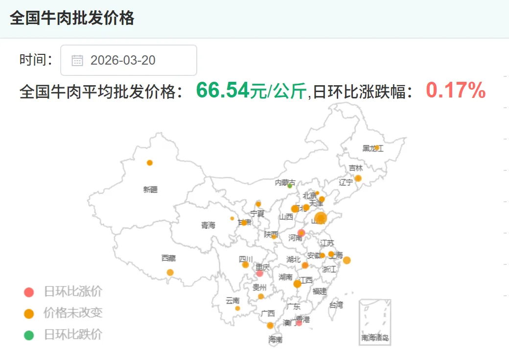 全国牛肉平均价格:66.54元/公斤