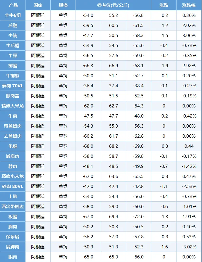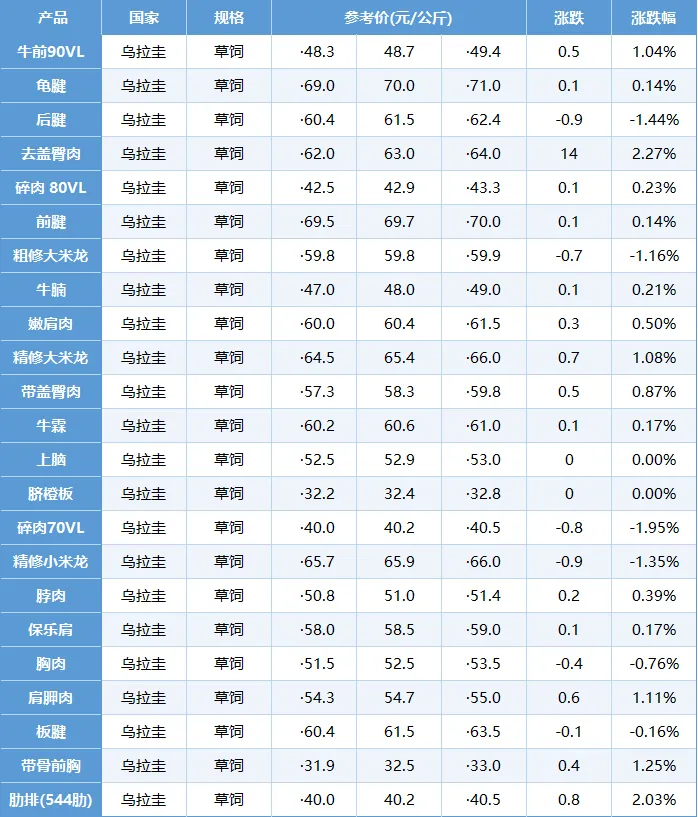全国牛肉批发价格