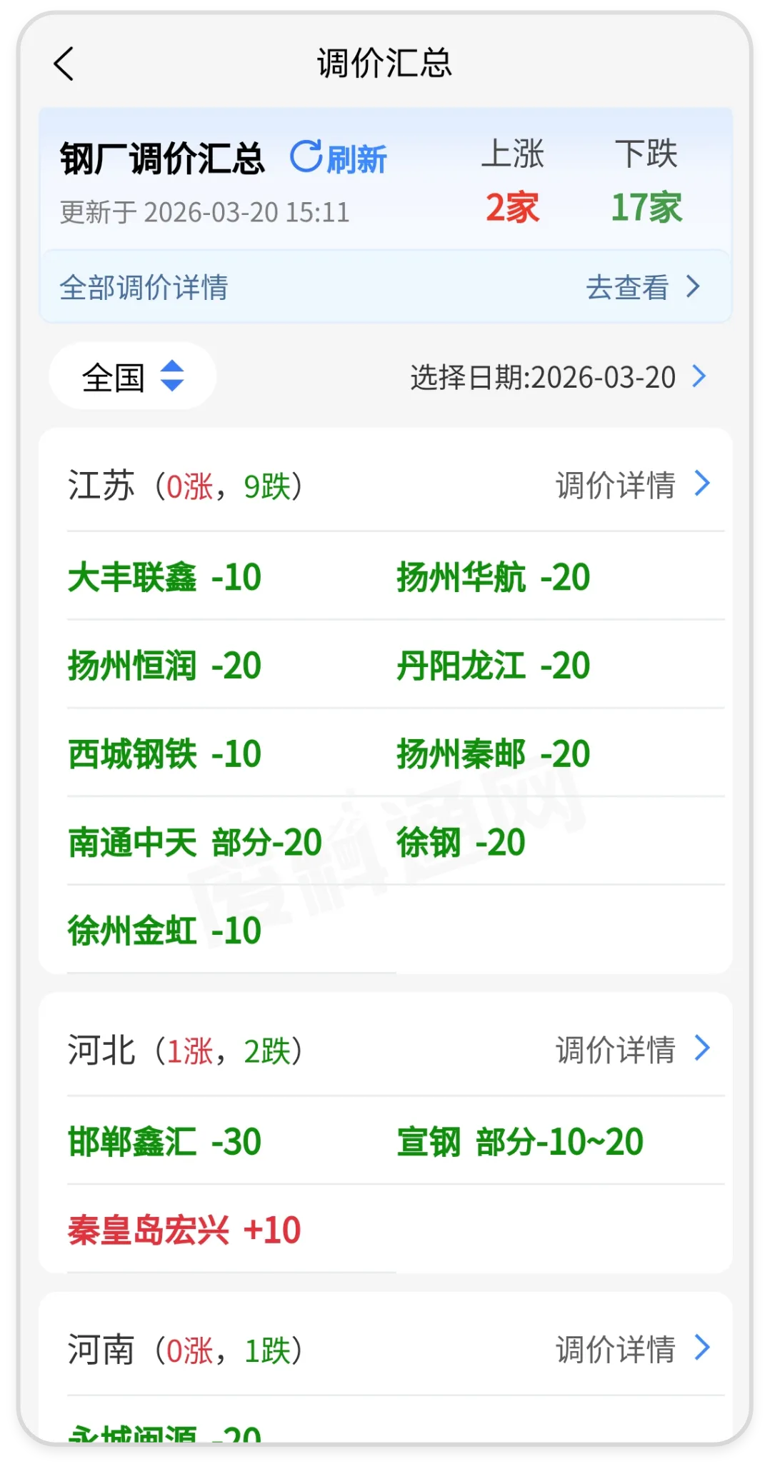 【废钢行情】全国钢厂废钢价格3月20日