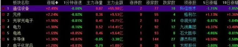 2 早盘,电力和通信设备,光学光电子;油气燃气倒数第一