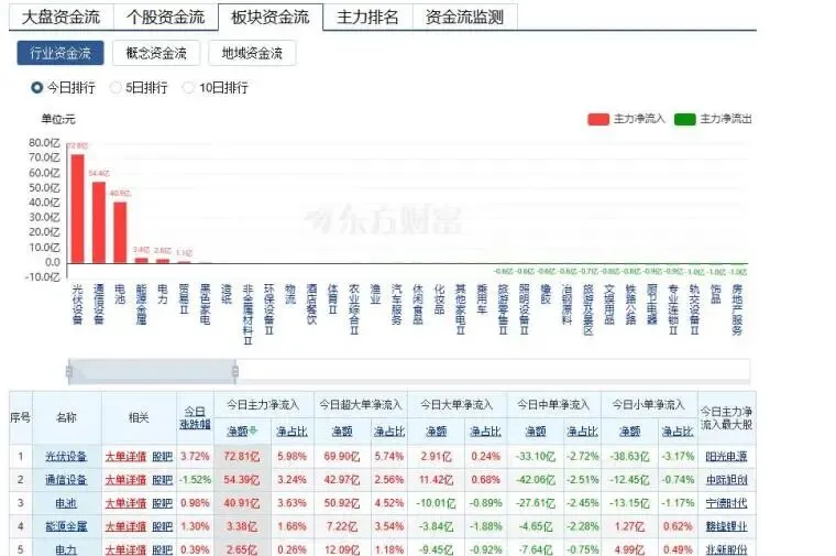 4 资金走向:光伏设备,通信设备,电池