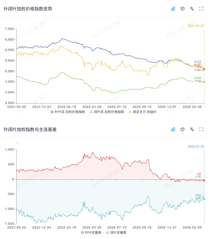 市场摘要:今日纸浆SP05合约震荡上行,针叶银星现货报价05+40附近,成交受限,阔叶桉木报价4550,实单商谈。
