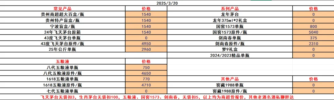 酒水主要为飞天茅台以及五粮液,范围还包括:国窖1573、剑南春等。购买酒水需注意是否包盲盒,以及要注意不要买到海外版本等。