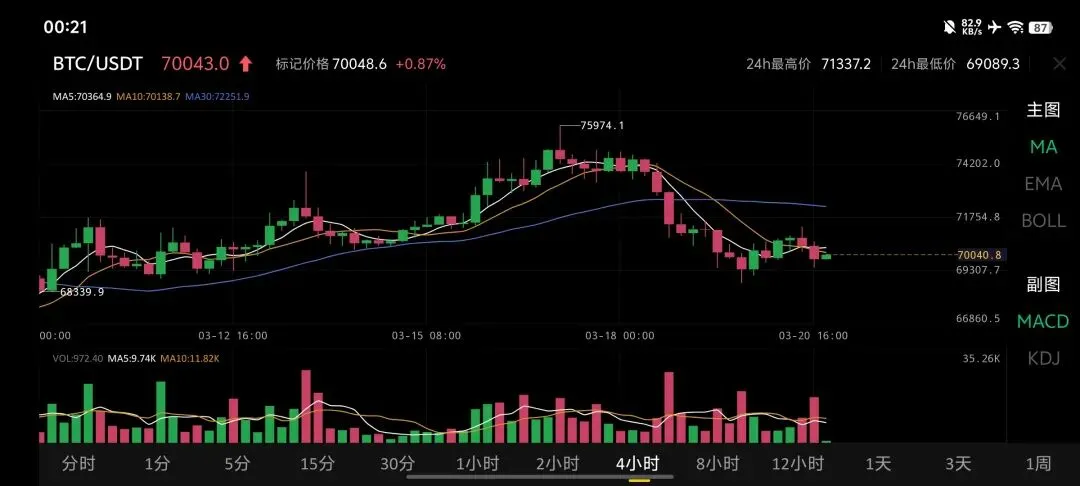 · 策略:对于合约交易,当前属于鱼尾行情。做空接近下方支撑区,盈亏比不佳;做多则逆大势。最稳妥的策略是等待价格反弹至71000上方承压时寻找高空机会,或者等待放量跌破69000后轻仓追空。若底背离确认形成,则更适合短多快进快出。
