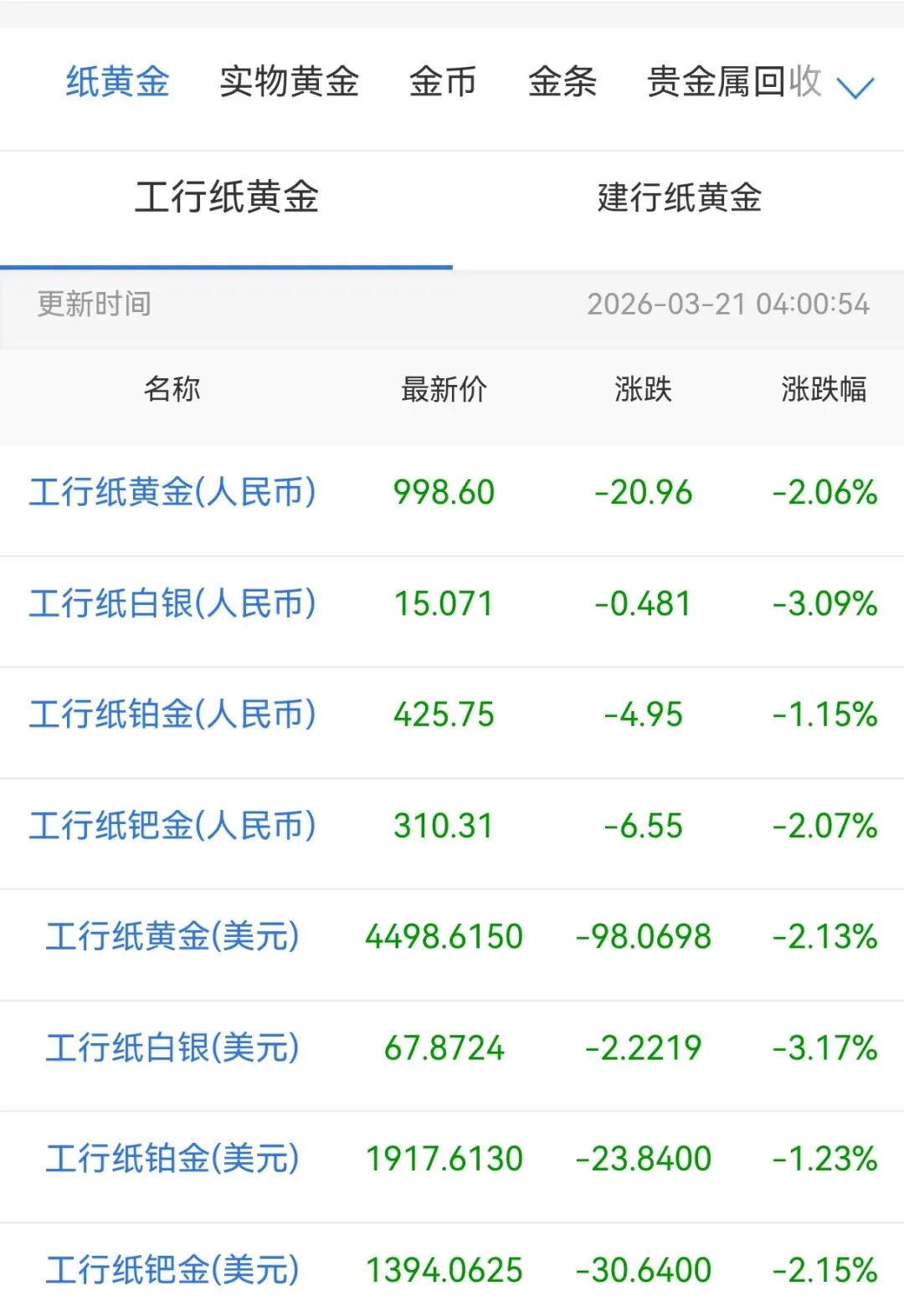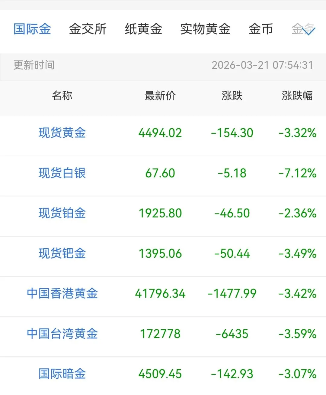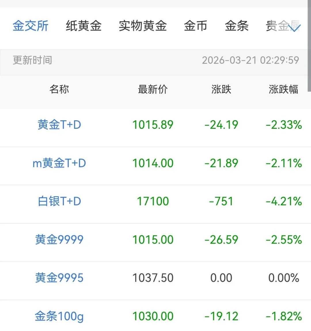 2026年3月21日贵金属行情大盘报价