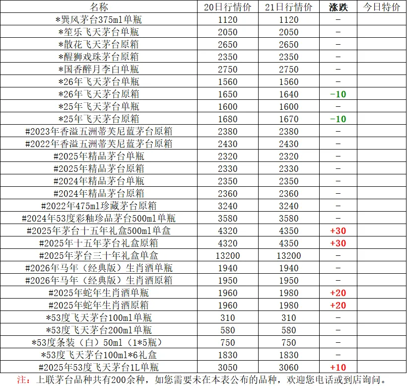 6.因茅台供销两旺,在一日之中偶有浮动属正常情况,本表仅作参考