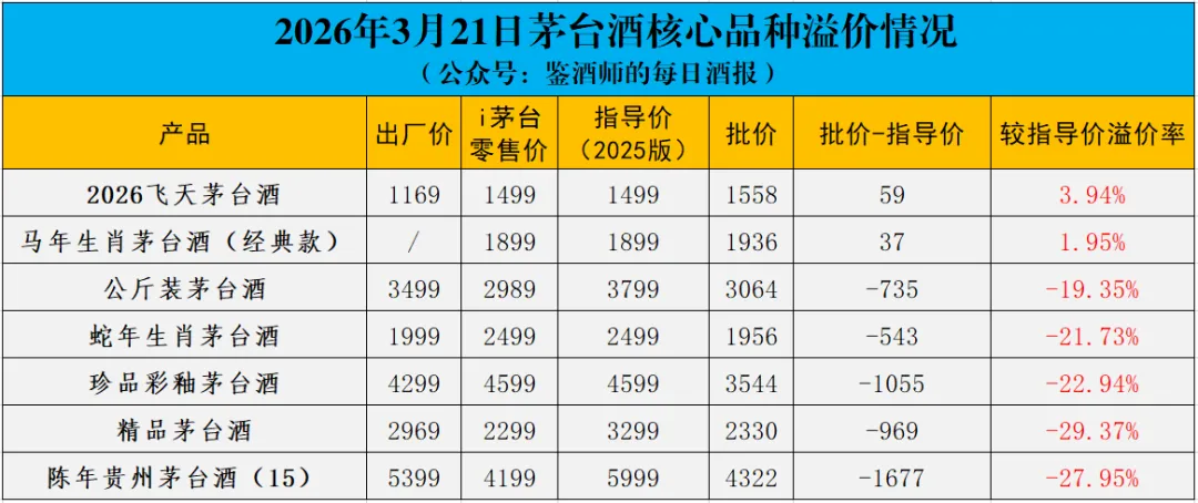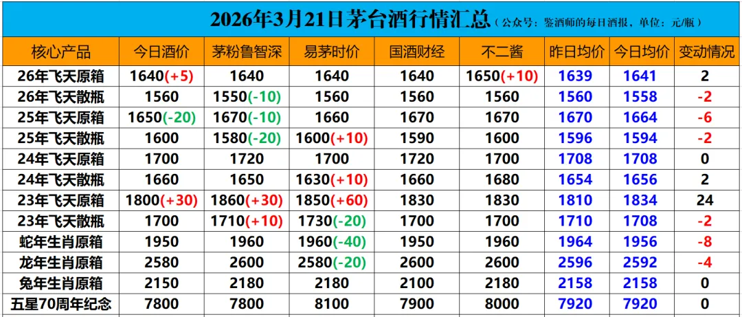 2026年3月21日茅台行情价格监测数据: