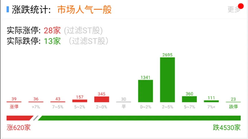 今天指数个股齐跌,但跌幅超5%的公司不到500家,跌停只有13家。量没放出来,说明恐慌盘还没真正涌出。