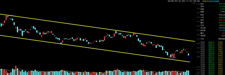 看看恒生科技股的走势就明白——单边下跌,超跌反弹后,重回下降趋势。