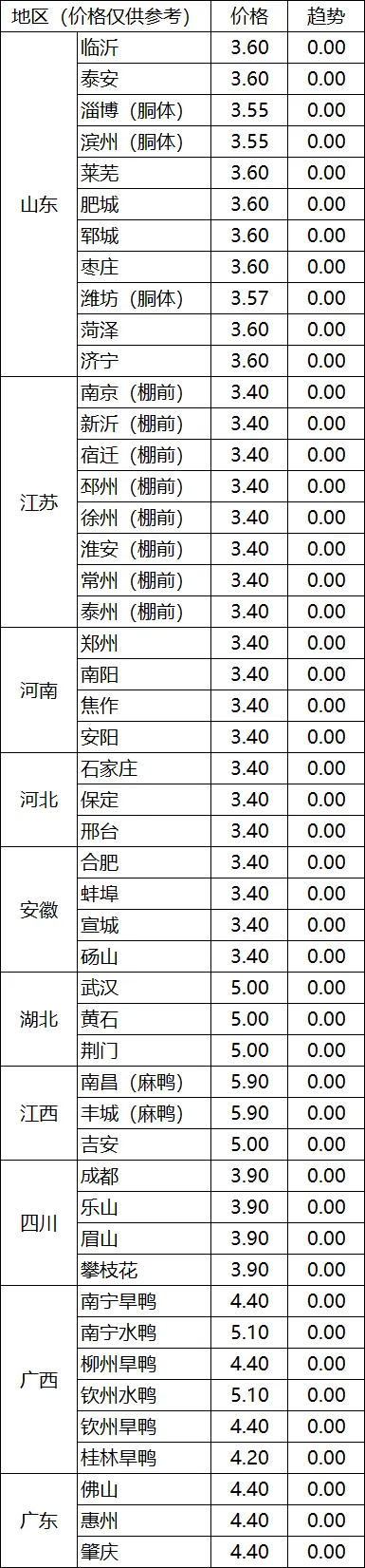 青岛地区肉毛鸡棚前收购价3.50-3.60元/斤,与20日相比持平;