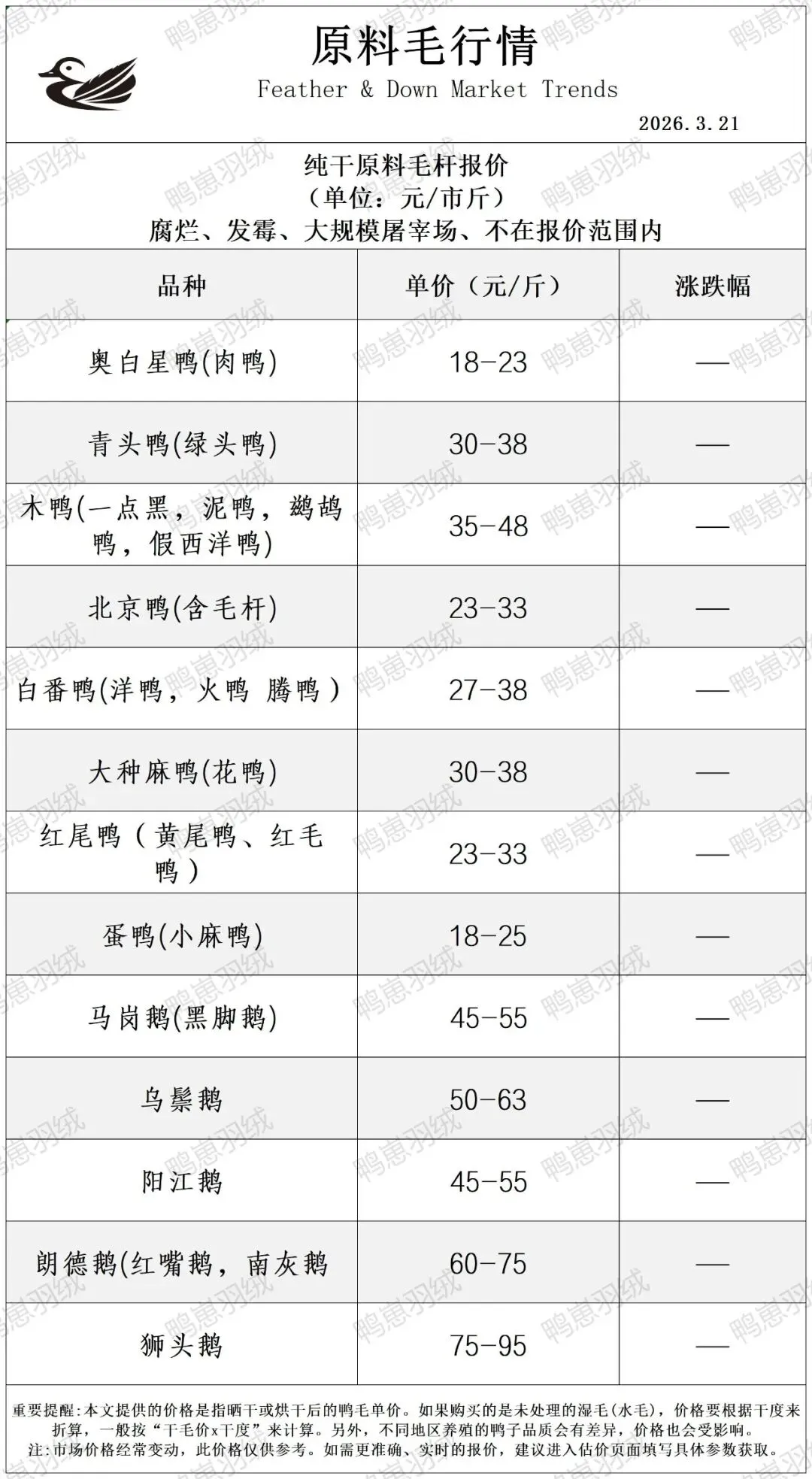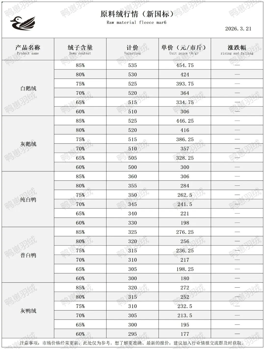 [羽绒行情发布]3月21日羽绒原料绒行情Down marketconditions on November 21, 2026