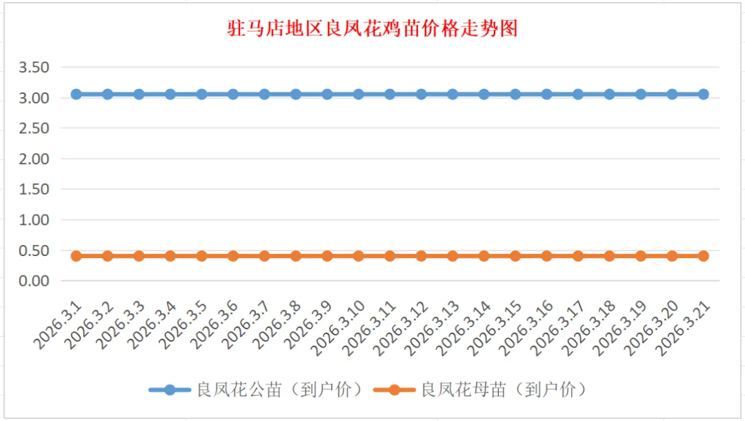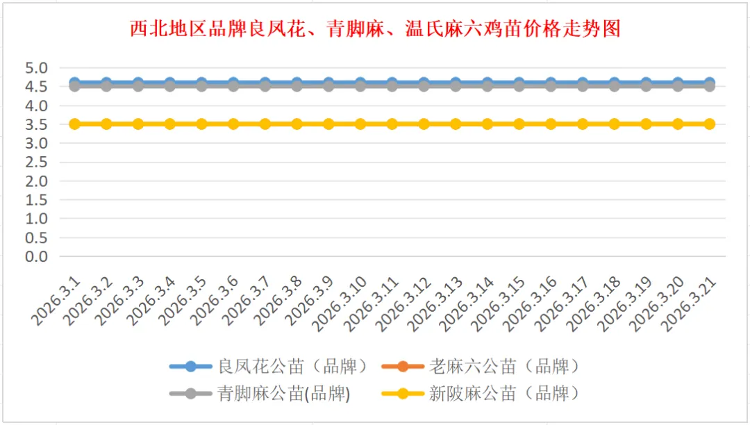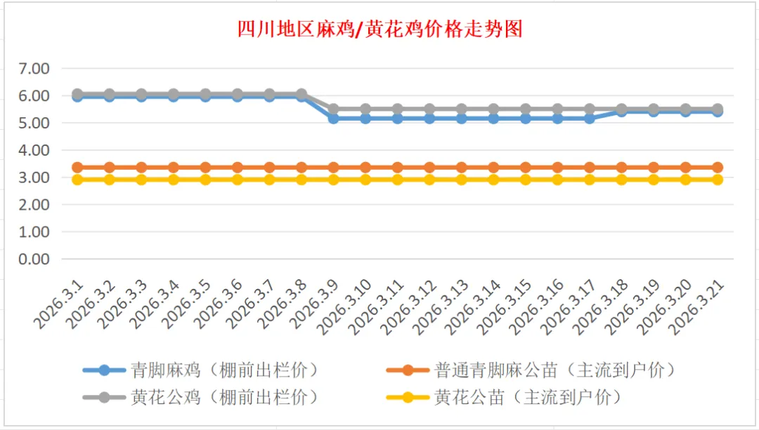 青脚麻公苗价格稳定,主流到户价3.80-4.00元/羽,稳