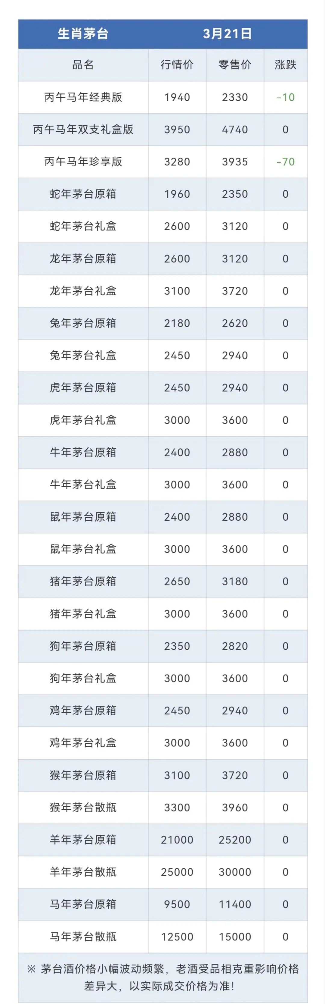 ※行情价:酒商调货价,不考虑物流运输人工成本,每个地区调货价有几十块浮动属正常现象。
