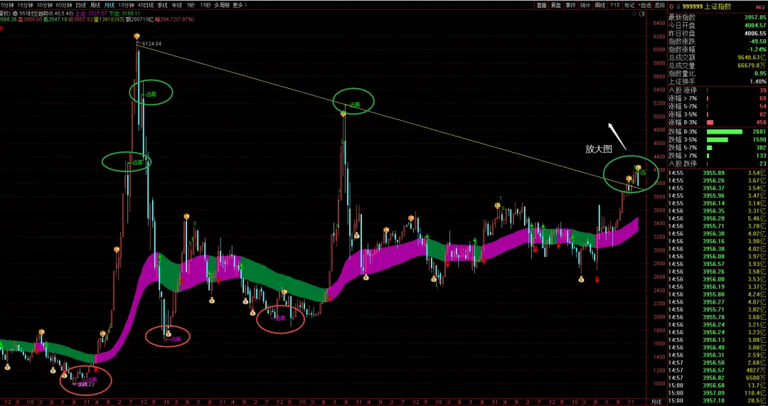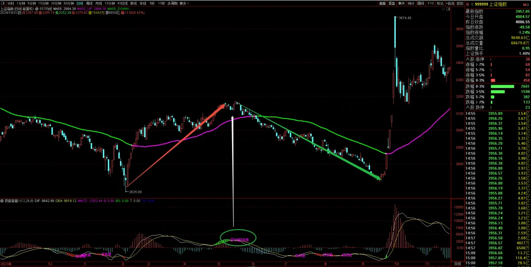 如果把时间拉长,往前看,2024年5月20日高点3174也是同样的技术原理形成的。所以,关于“择时”的技术分析基础理论,有三句经典名言:1,价格包容一切;2,历史会重复发生;3,趋势一旦形成就会延续。