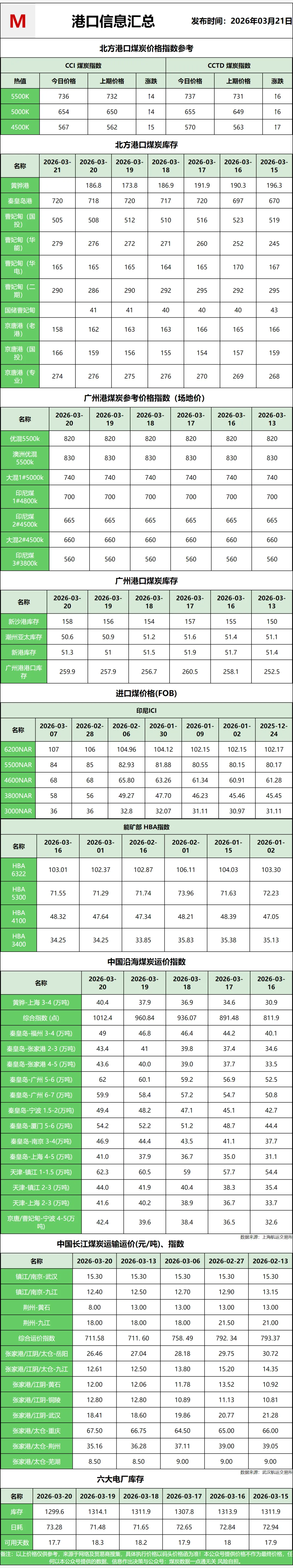 【进口情况】:整体还是冷清的状态,进口煤依旧全面倒挂,基本没什么实际成交。印尼、澳洲这边的外盘报价一直没松动,算上海运费、关税和各项成本,到岸之后比国内同卡数煤贵出一大截,贸易商和电厂根本不敢轻易接货,哪怕有少数远期报盘,也没人愿意冒险下单。印尼这边因为斋月减产、前期雨季影响,低卡煤供应偏紧,报价小幅坚挺,但抵不过国内煤价性价比更高,沿海用户全都转向国内采购,进口煤市场几乎处于停滞状态,短期内也看不到反转的迹象,完全成了国内市场的配角。