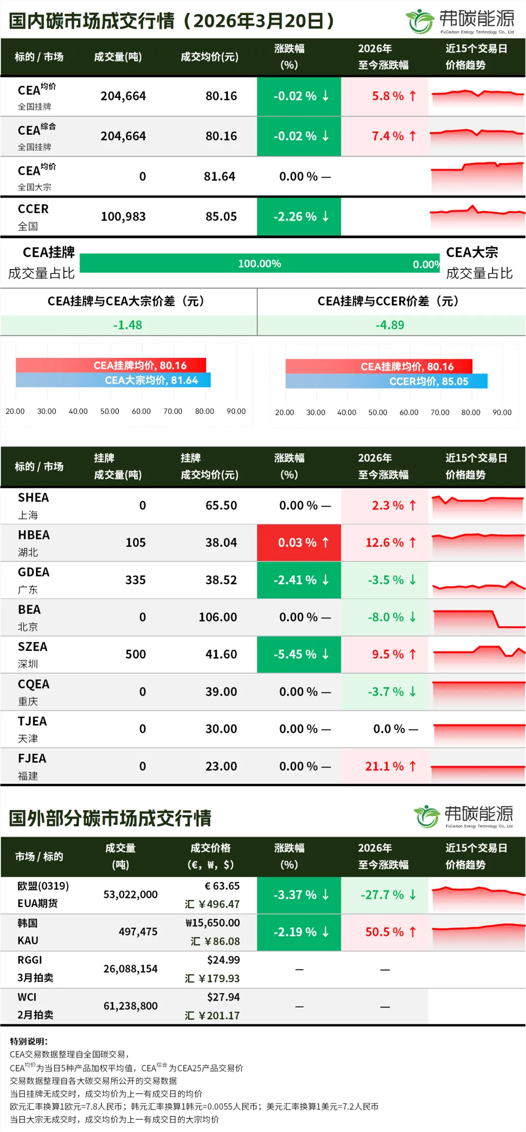 >碳市行情26.3.20 | CEA挂牌成交20.4万吨,成交均价下跌...