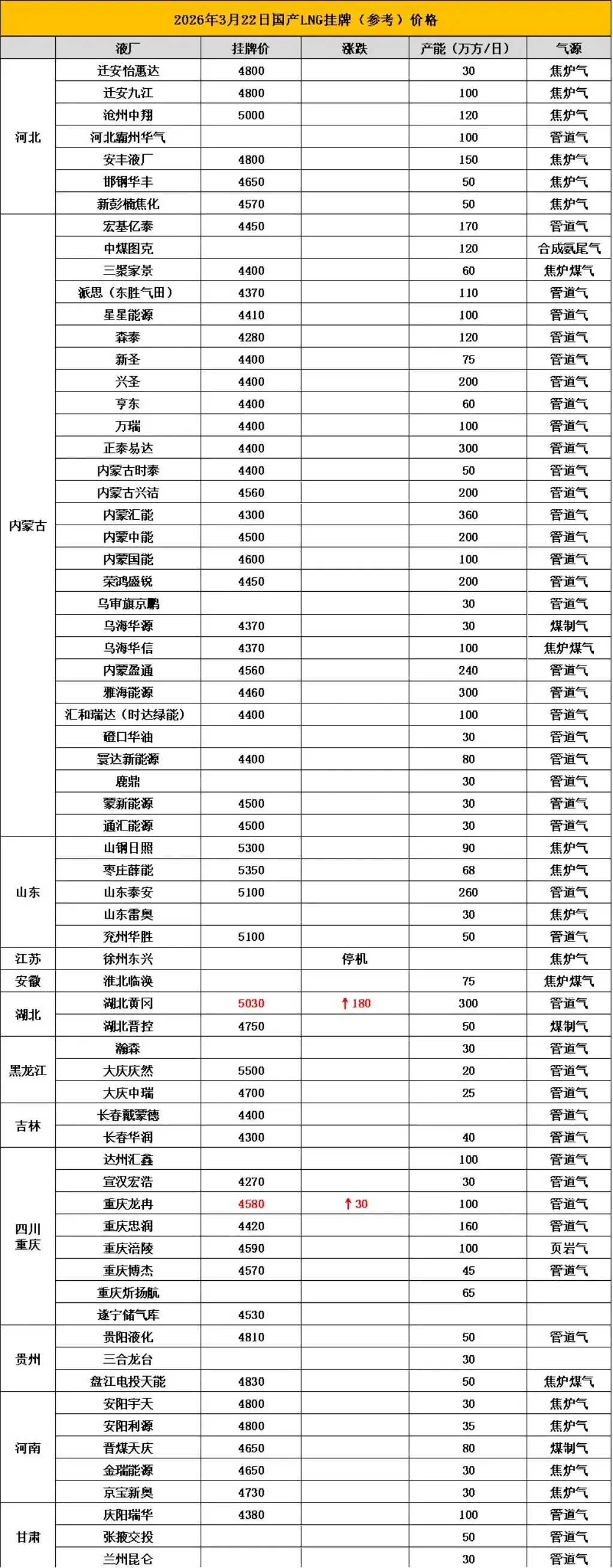 为了方便朋友们及时了解市场动态,掌握市场行情,把握市场机会。亿慧云天然气每天为大家提供行业新闻,国内LNG挂牌价格,本价格信息只做参考,具体提货价格请与工厂销售联系。(当天调价见底下留言)