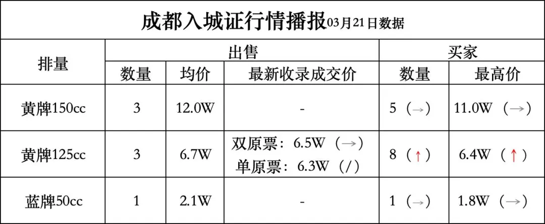 成都摩托车入城证2026年03月21日交易行情播报-来自"路集GO"