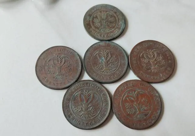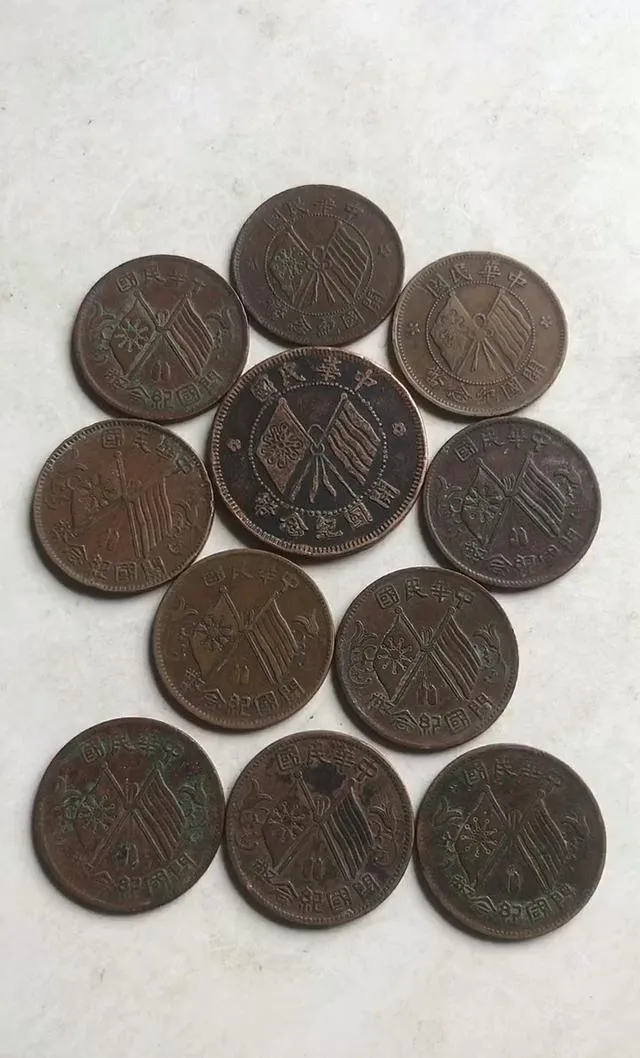 剩下普通双旗币,数量多,但也分门道,常见的是铜锈一片青,一面两旗,周围刻着中华民国几个字,仔细看字体有细微差别,品相差的有人拿醋泡,有人拿钢丝球搓,结果全弄坏了,奶奶说以前这币一大把,现在凑在一起还能闻到点旧时光的味。