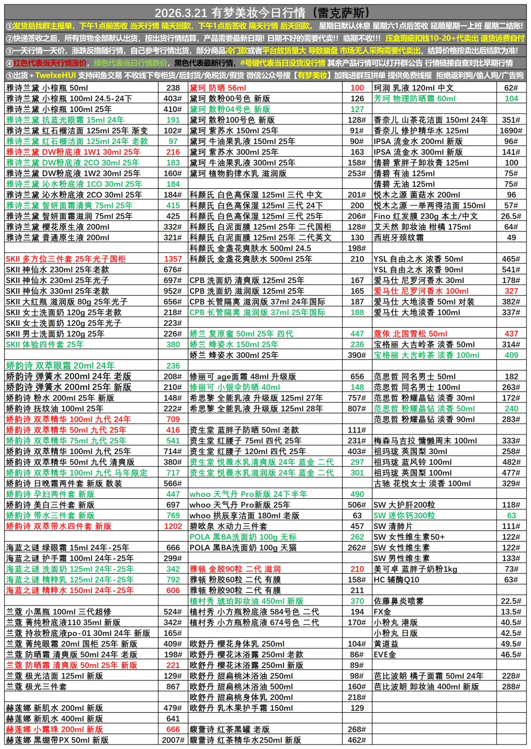 2026.3.21有梦(美妆)收货行情更新