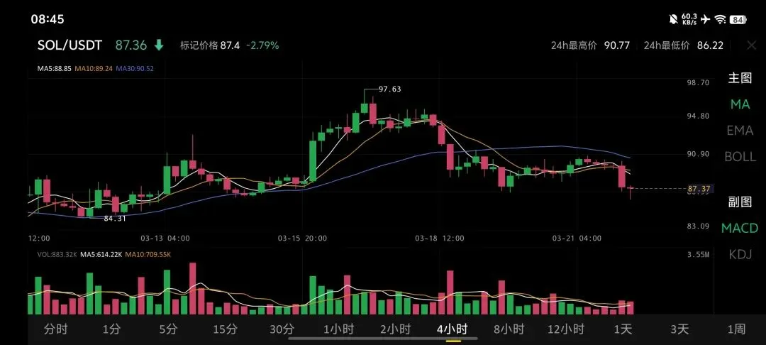 2026年3月22日SOL 行情图的分析: