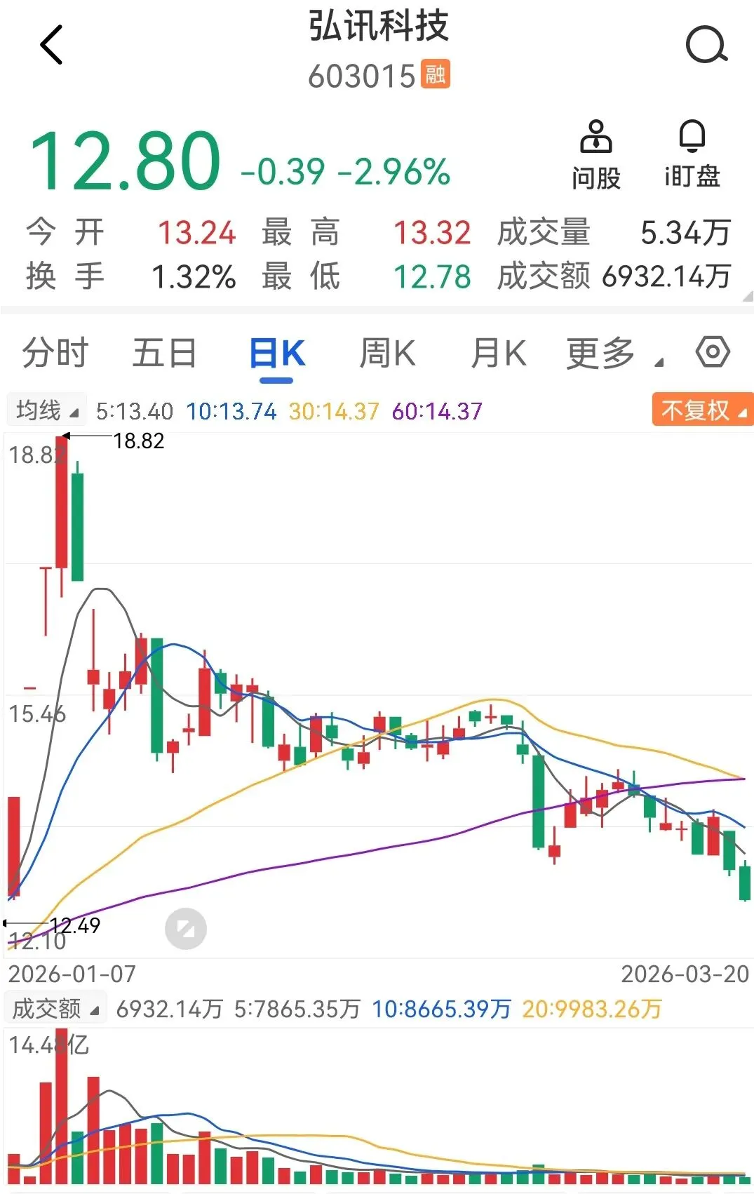 弘讯科技,1月7日因为可控核聚变概念被大炒一波,四天连续四个涨停,随后开始下跌模式,中途抄底小恩小惠倒是有,想要波段则完全没有。