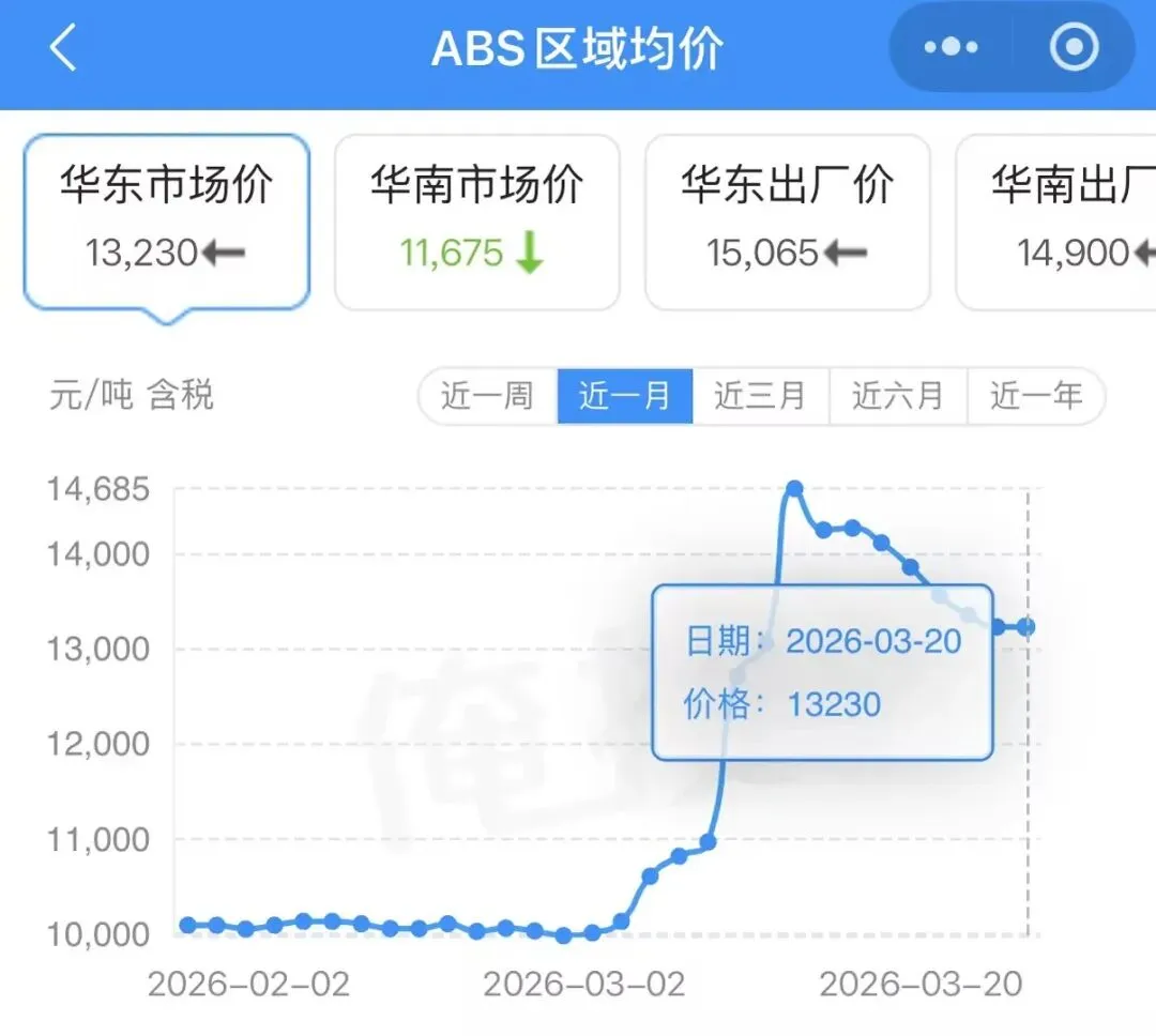 ↓↓ABS华东、华南市场价已更新↓↓