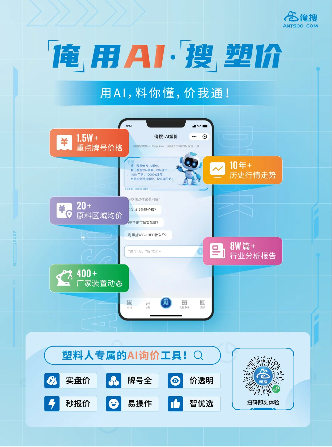 1.5W+全球塑料牌号报价库,数据简洁准确!市场价格、实盘价格……应有尽有,AI工具24小时,3秒就能给你想要!