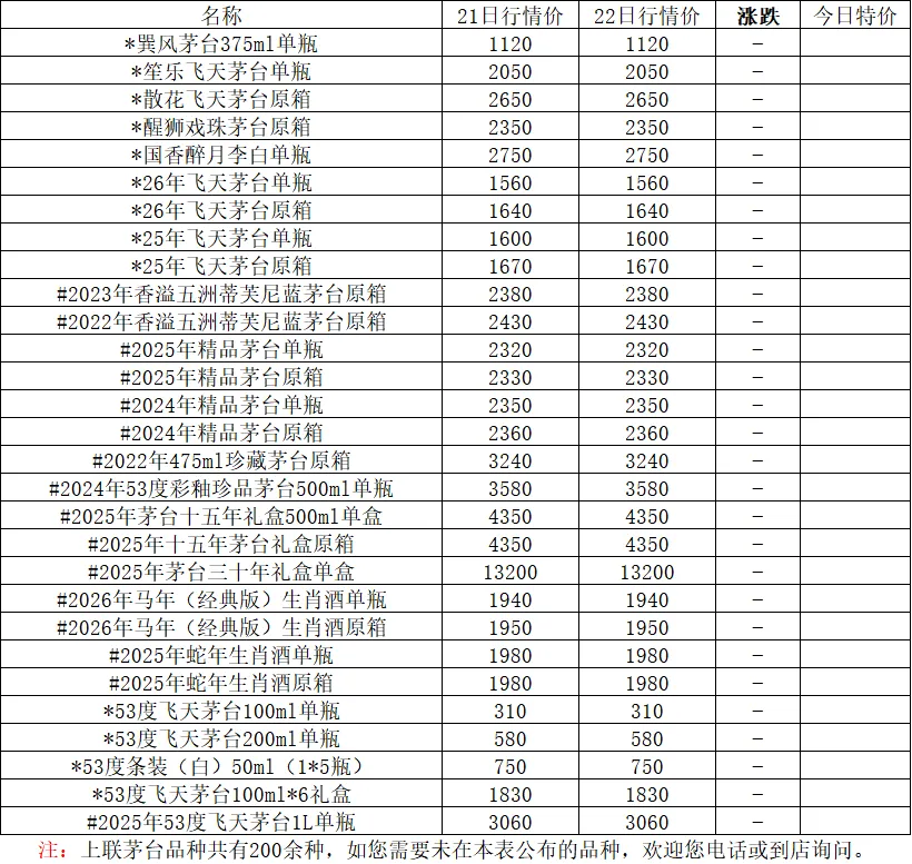 上联茅台酒价格行情发布3月22日