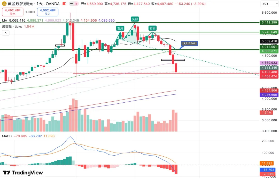 黄金本周收大阴,下周还有一跌,先关注前低4400是否下破。4400不破,行情继续大区间震荡,或还会回调400美金没问题,也就是还会去4800甚至5000附近。一旦4400有效下破,至少应该还有接近200美金下跌空间,如果按照一比一,大概在4225附近。目前周线阻力顶底转换4683附近,触及可以做空,看4400附近。日线周五日内来回震荡洗盘,欧美盘下破大跌,日线收上长影阴线。周一反弹空为主,阻力4660附近,触及做空。小时线阻力4570,如果行情走弱4545附近先空,极弱的话,不排除4517附近先回落。