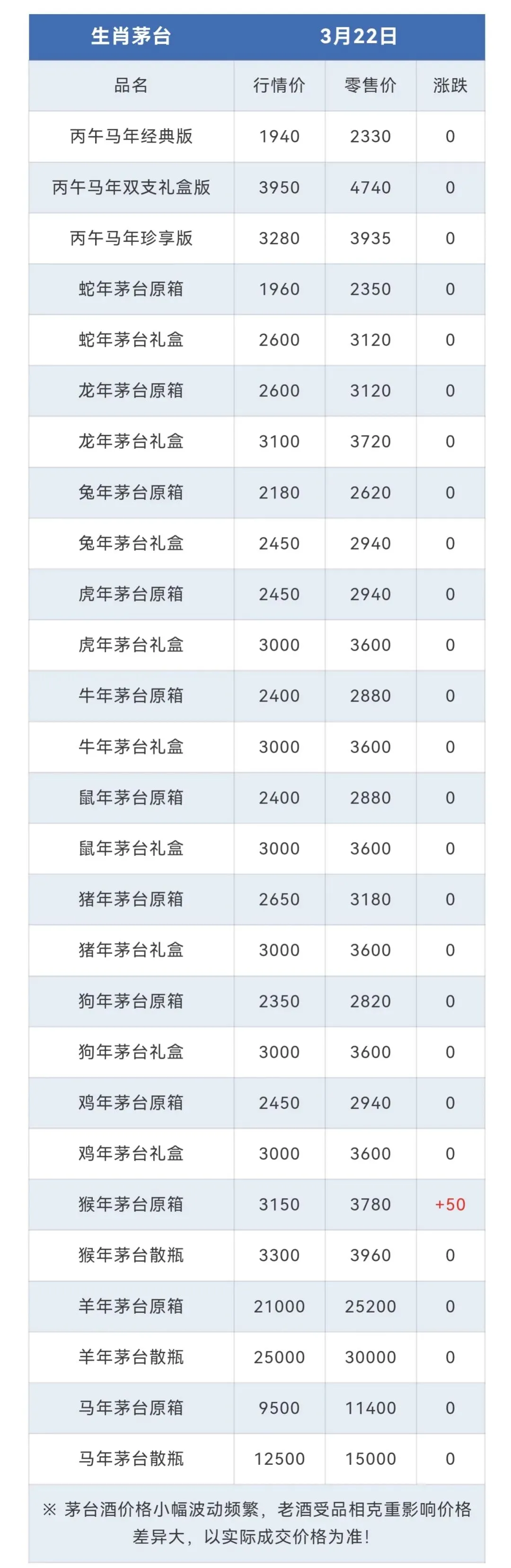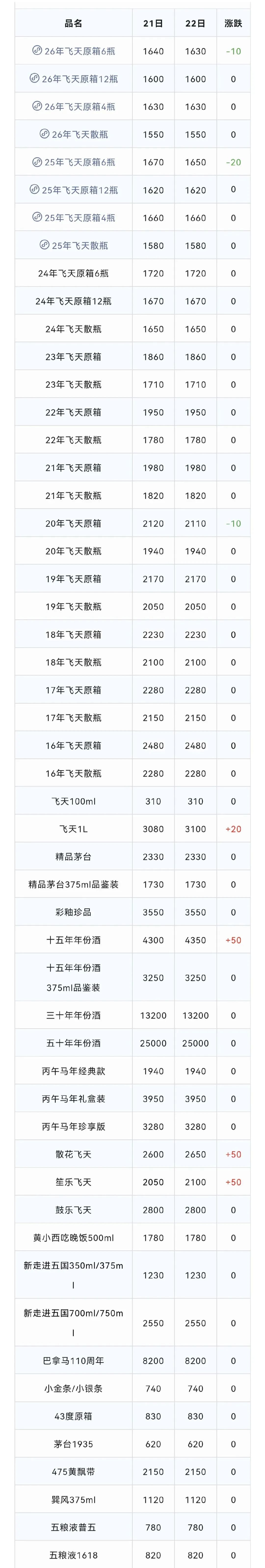 ※行情价:酒商调货价,不考虑物流运输人工成本,每个地区调货价有几十块浮动属正常现象。