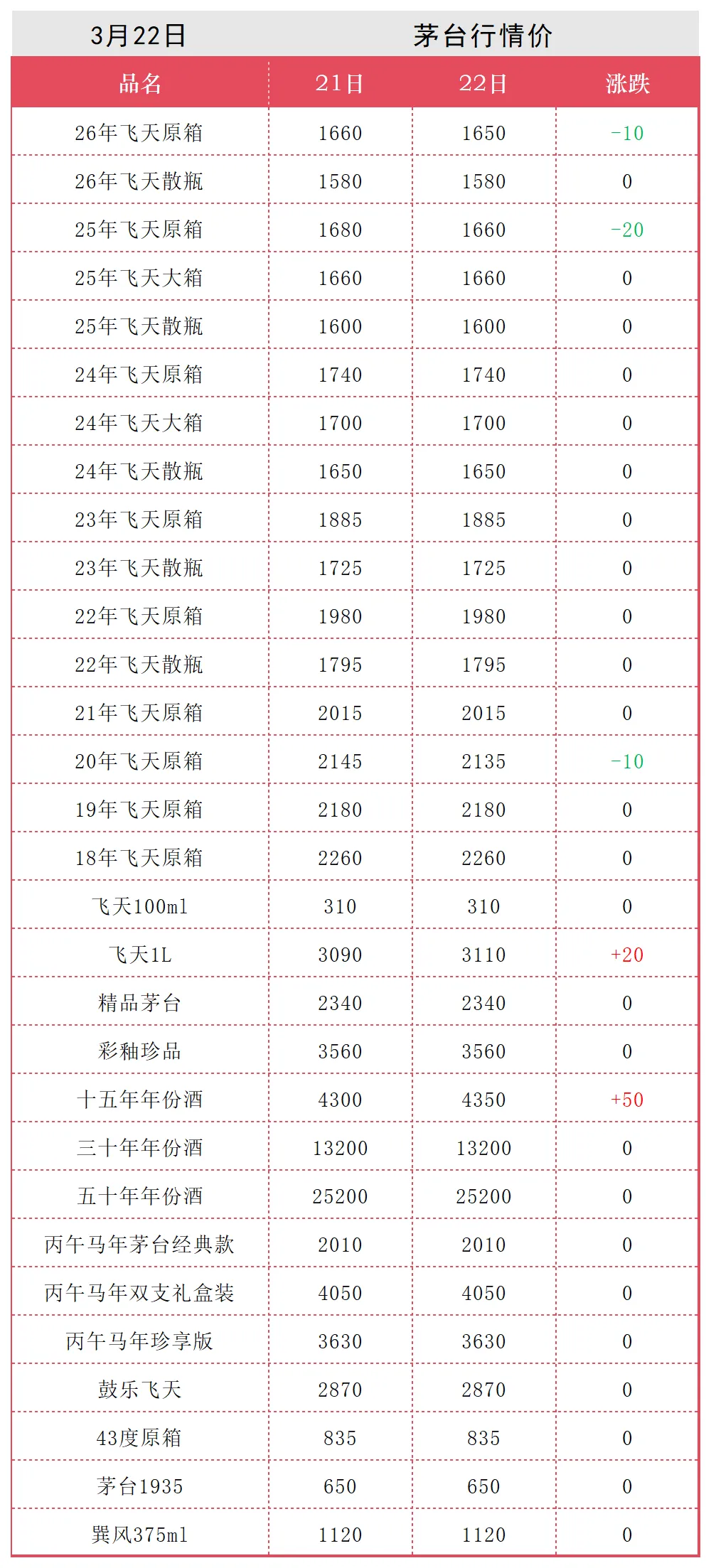 飞天下跌.3月22日茅台行情价.