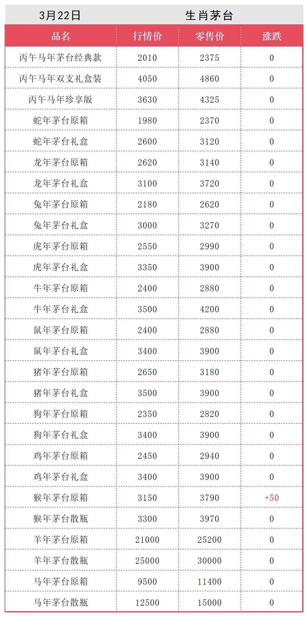 3月22日酒水价格行情...…