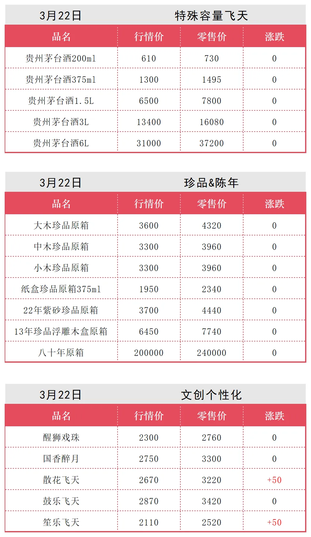3月22日各类茅台批发行情价
