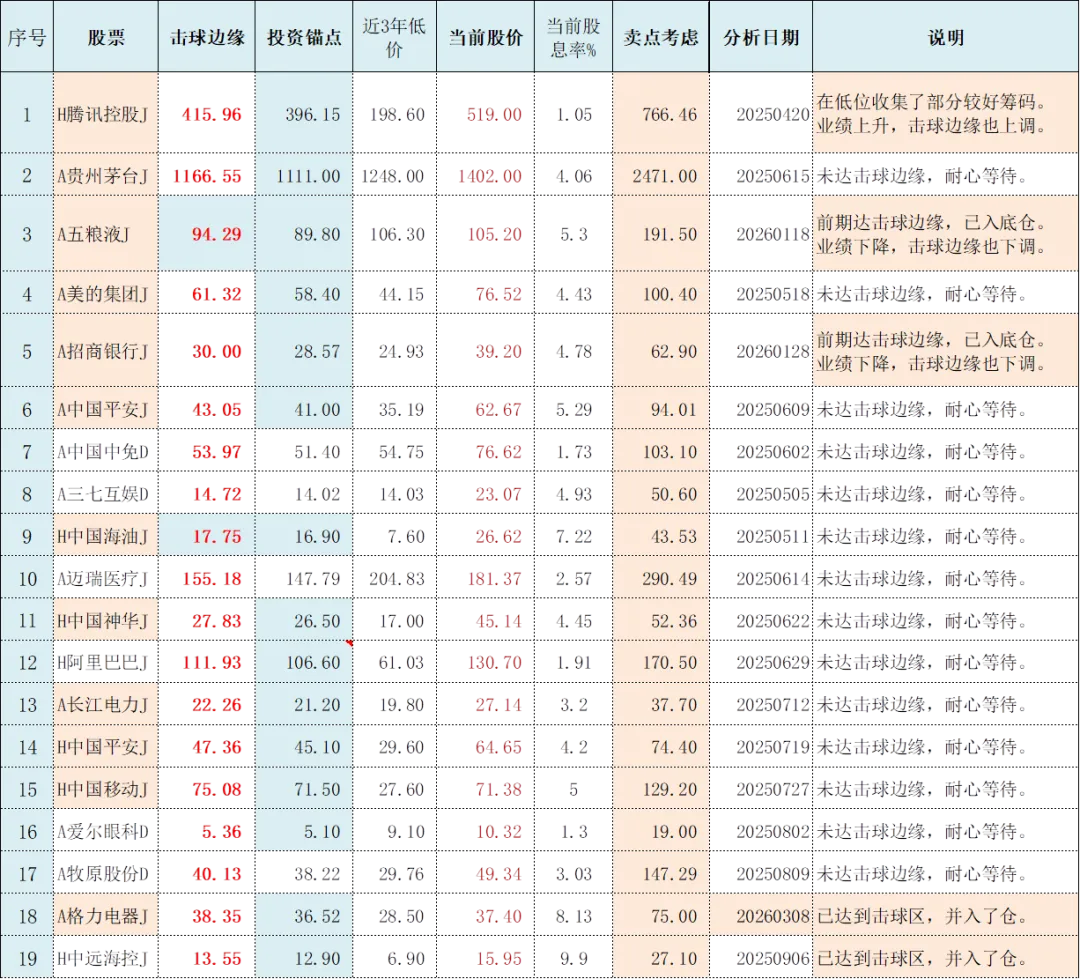►20260322:无更新,用于下述标的观测近期估值情况。
