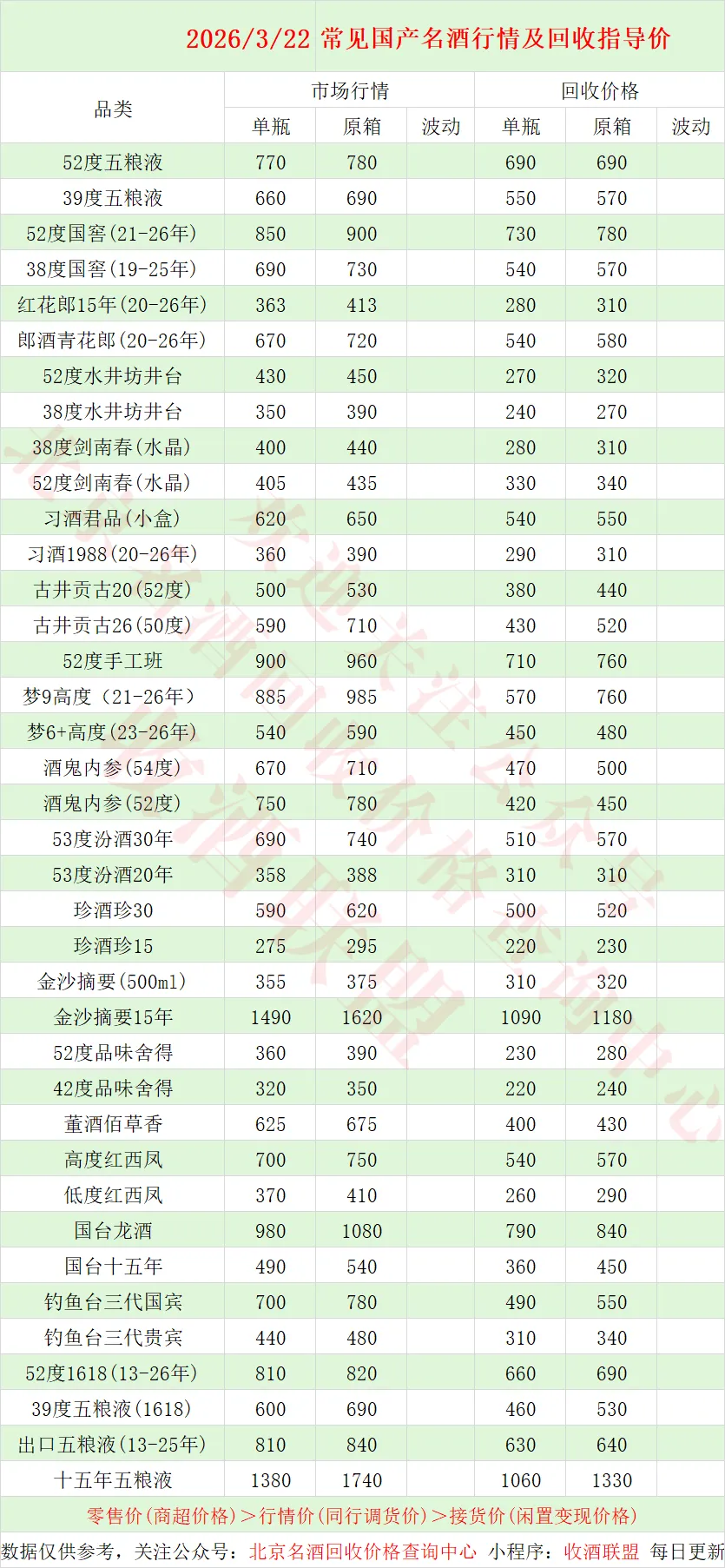 也称之为同行调货价,酒商之间互相调货的价格,市场价与回收价均以行情价为基础。
