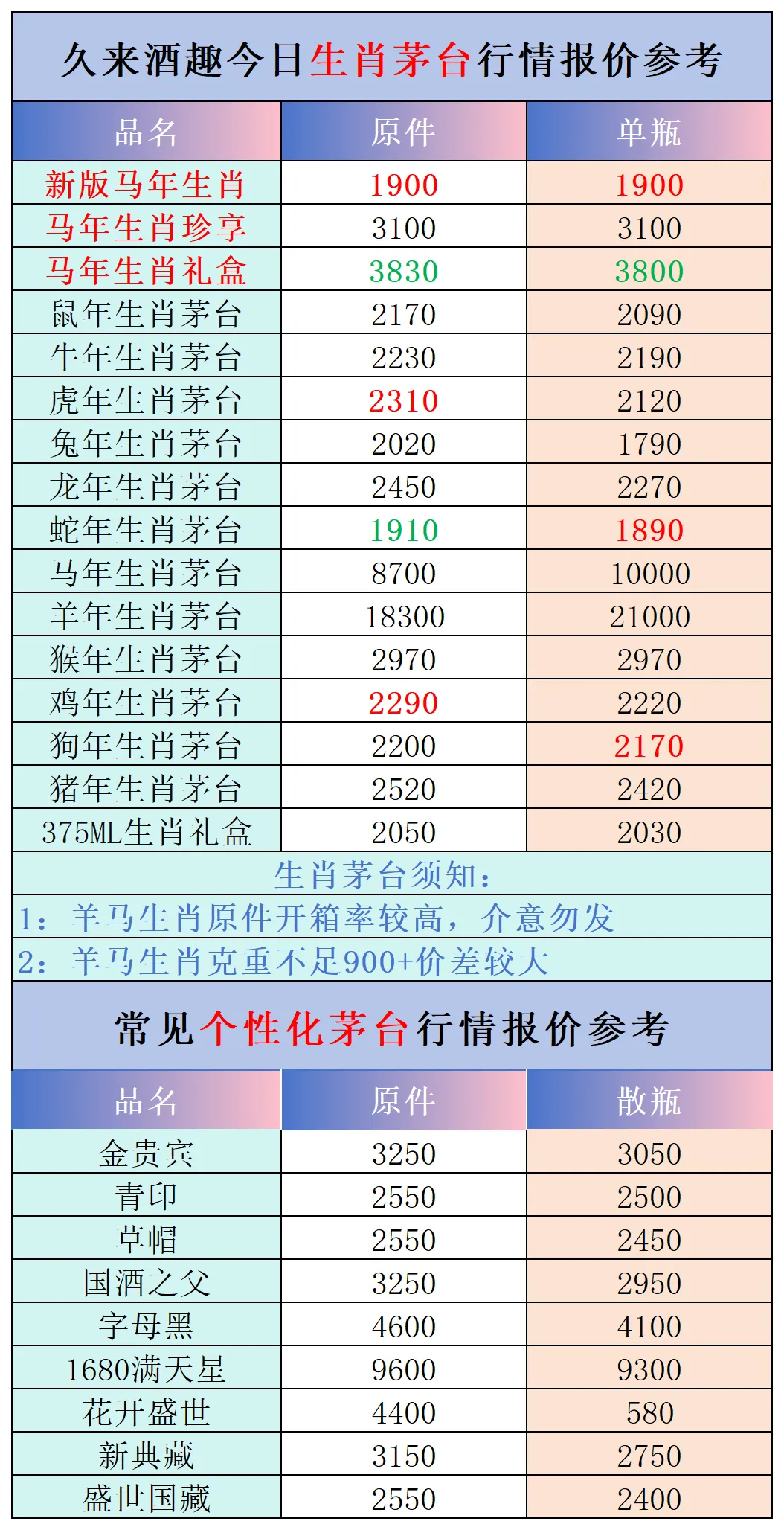 本公众号提供各种名酒回收行情报价,常规茅台、五粮液、洋河、剑南春、国缘等。所有报价根据市场买卖行情总结而来,每天更新最新报价!部分酒水每天涨跌幅较大,无法及时更新请谅解。本报价仅供参考,并非实际成交价格。感谢您的关注!我们会竭尽所能,提供更多更好的服务。