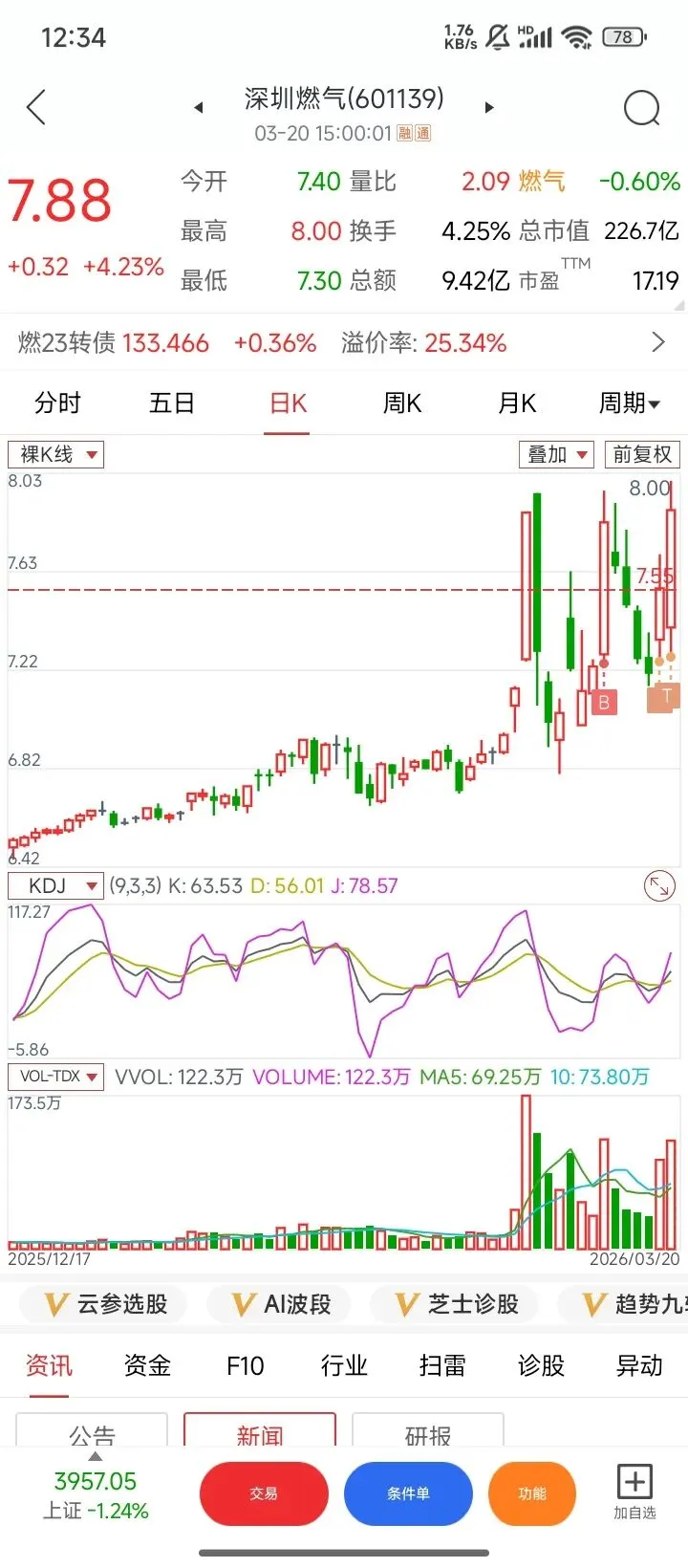大家可以看到,深圳燃气在最高点买入,连续跌了四天,一次都没有加仓,是因为在市场很不好的时候是不会加仓的,只有反弹的时候才会先买入拉高卖出,做T。