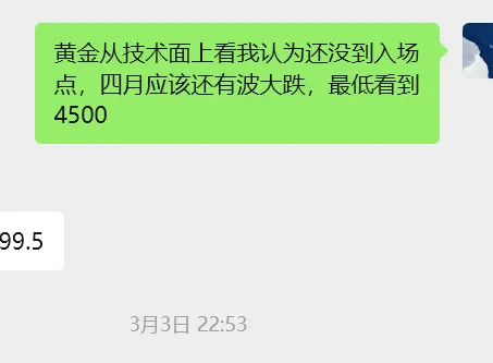 另外就是黄金为代表的贵金属,这个我最后再说一下看法。我在某群3.3提到我看黄金会到4500,目前市场对美联储降息的态度过于悲观,其实是远超我的预期的。而当下也绝对不是入场时间点。尽管点位已经到了我的心理预期,但时间还远远不到。现在去买贵金属的性价比非常非常低,风险是远大于机会的,不要接飞刀。后续到时间我会提示的,但肯定不是现在(尽管我认为下周周中会有反弹,但那也仅仅是反弹)。