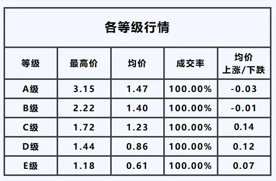 A级——最高价3.15元/枝,均价较昨日,上涨0.03元/枝;
