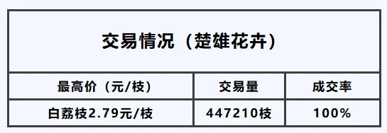 单头玫瑰供货量较前一交易日增加,交易行情上涨,成交率100%。其中: