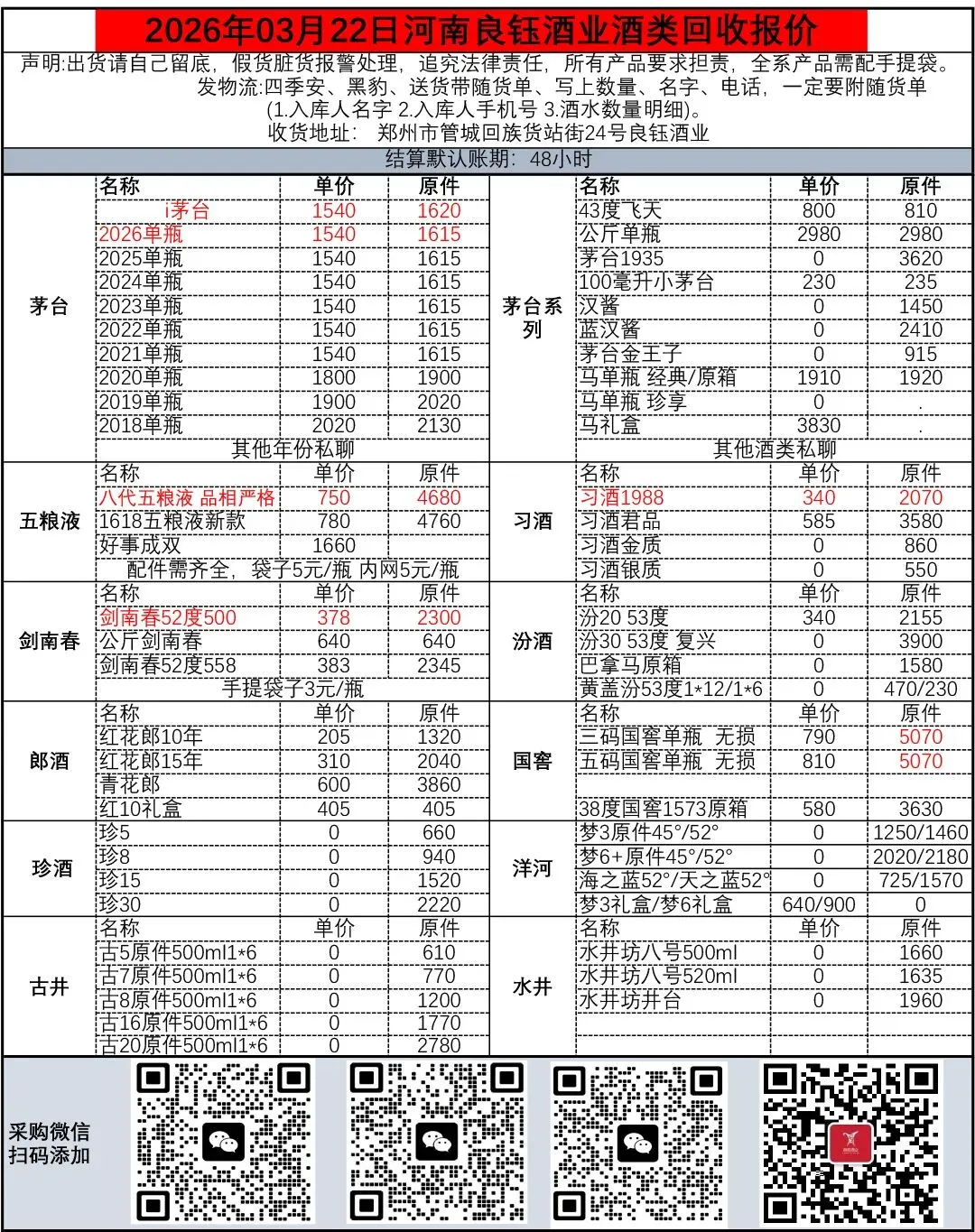 地址变更:收货地址: 郑州市金水区陇海快速路与货站街交叉口东北角 良钰酒业