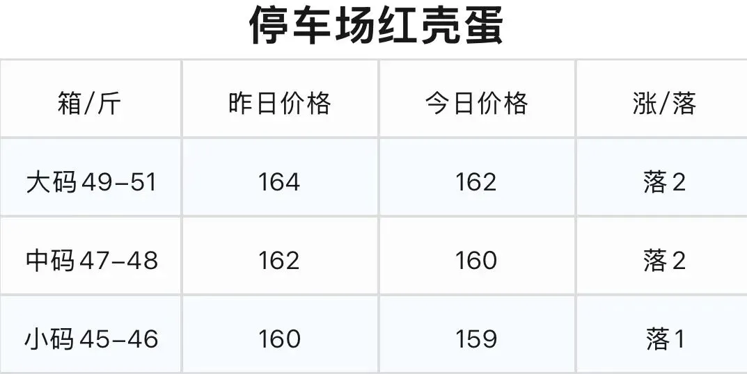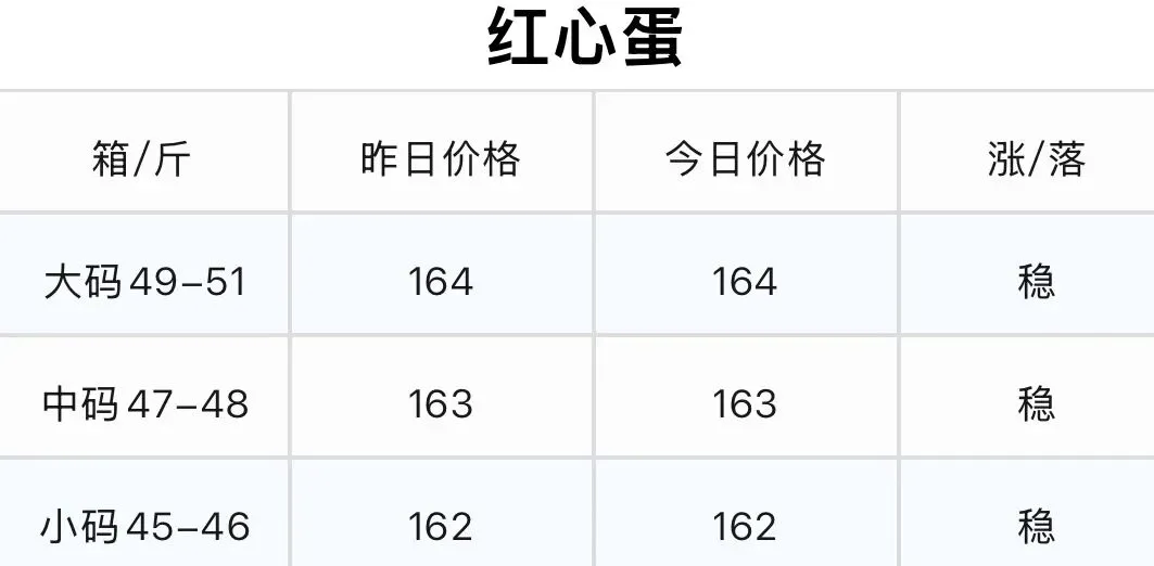 1.粉壳蛋、红心蛋价格全规格走稳,无波动。红壳蛋价格小幅下跌,大、中码每斤回落2元,小码回落1元。