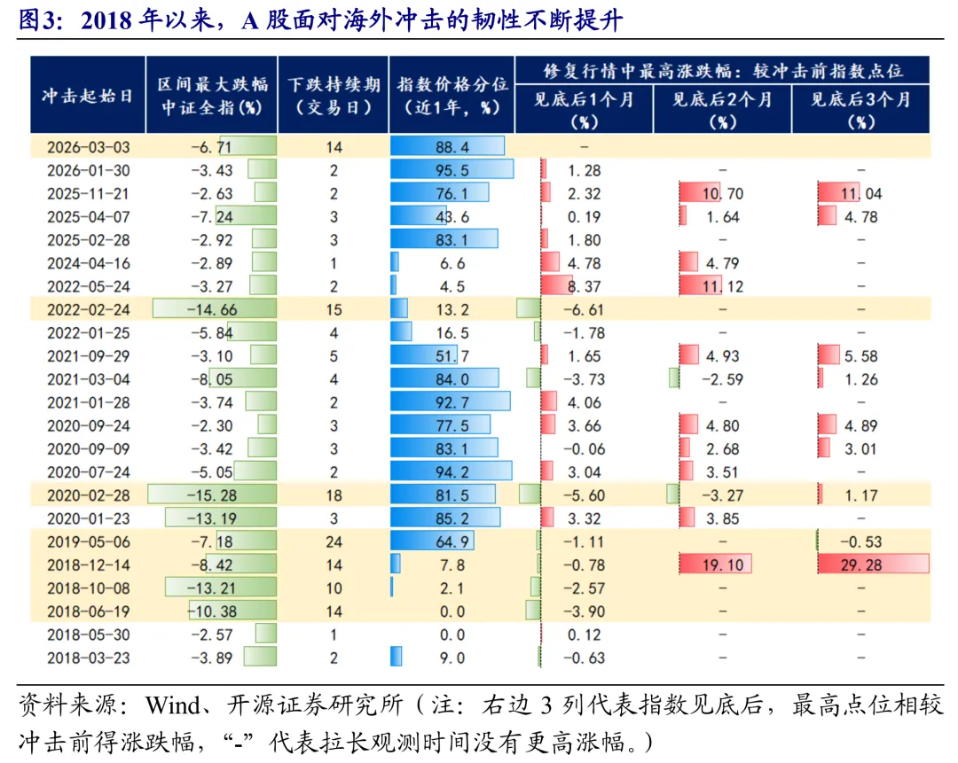 而高度上,指数大概率能修复冲击前的点位,因此,即使出现超预期的冲击升级,可视作仓位管理中持有现金获取的超额收益,可逐步增加仓位。