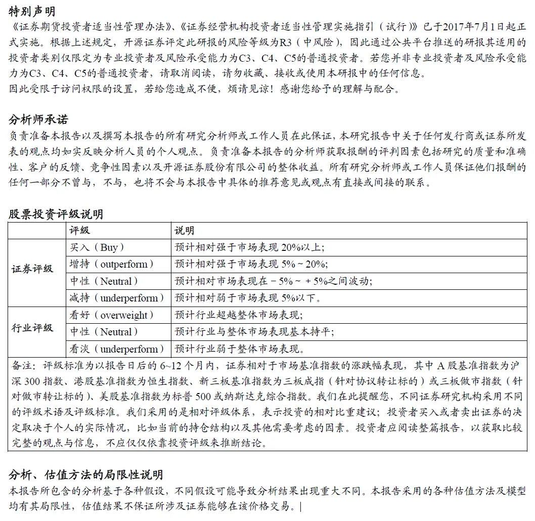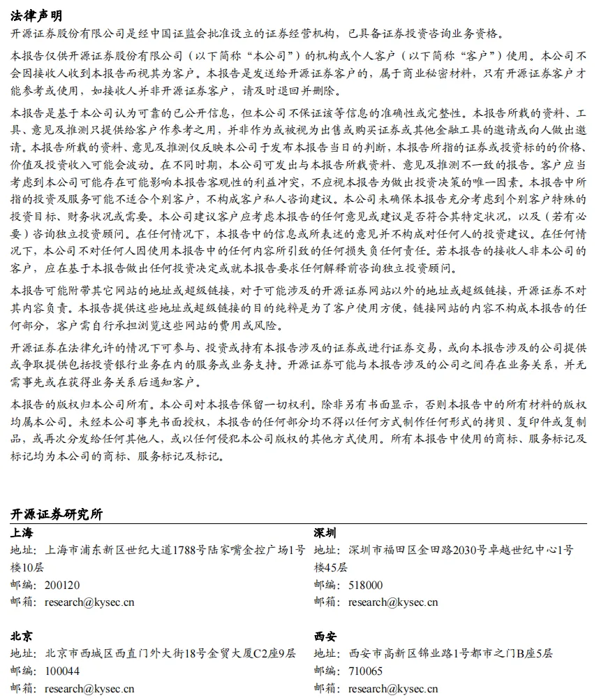 本报告仅供开源证券股份有限公司(以下简称“本公司”)的客户使用。本公司不会因接收人收到本报告而视其为客户。本报告是发送给开源证券客户的,属于商业秘密材料,只有开源证券客户才能参考使用,如接收人并非开源证券客户,请及时退回并删除。