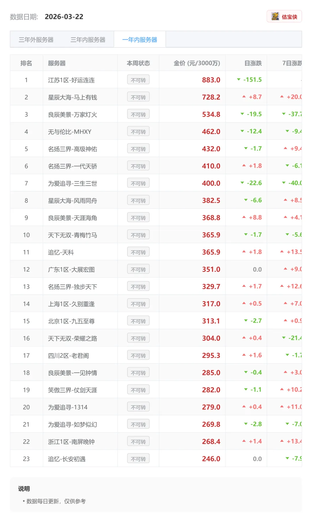 梦幻西游藏宝阁号价趋势简报(近7日)