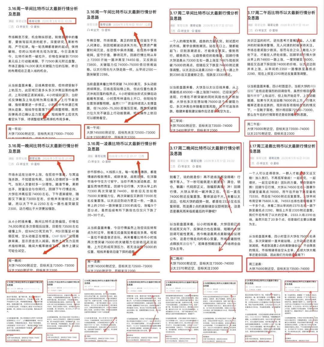 市场从不眷顾那些急于暴富的人。你越着急,账户越安静;你越从容,机会越靠近。这不是玄学,是心性决定的。当你把目光从五分钟K线上移开,开始思考三年后的行业格局,你才真正踏入投资的门槛。耐心不是等待,是在等待中持续积累。慢下来的人,反而走得最远。回顾这一个星期的行情,这星期基本走的都是一个下跌的趋势,大饼在周一的72000左右缓慢上升至74500后,在周二一路上升至本周最高点76000,随后又迅速跌至74000附近震荡调整,一直到周四都是下跌趋势,从74000一直下探至70000左右,周五周六整体行情也都不大,一致在70000附近震荡调整,直到周天凌晨4点迎来一波下跌,直到现在以跌到最低点68000,本周整体呈现一个倒V的走势,上下波动7500点左右。